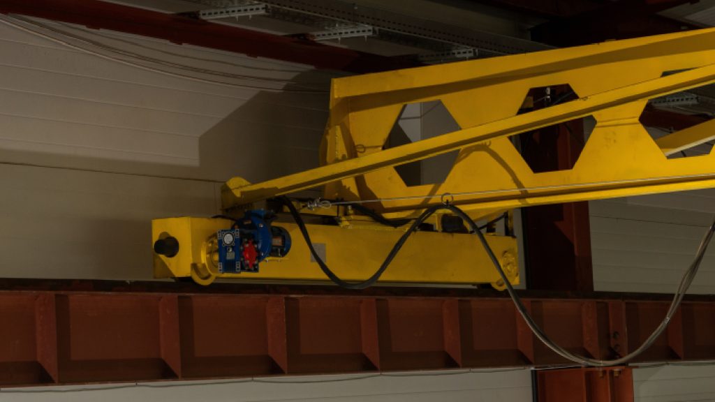 The crane, featuring a chain hoist, provides mobility and easy installation, making it ideal for workshops and warehouses.