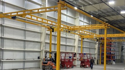 The installation covers multiple bays and incorporates three motorised bridge cranes, each capable of lifting up to 1,000kg.